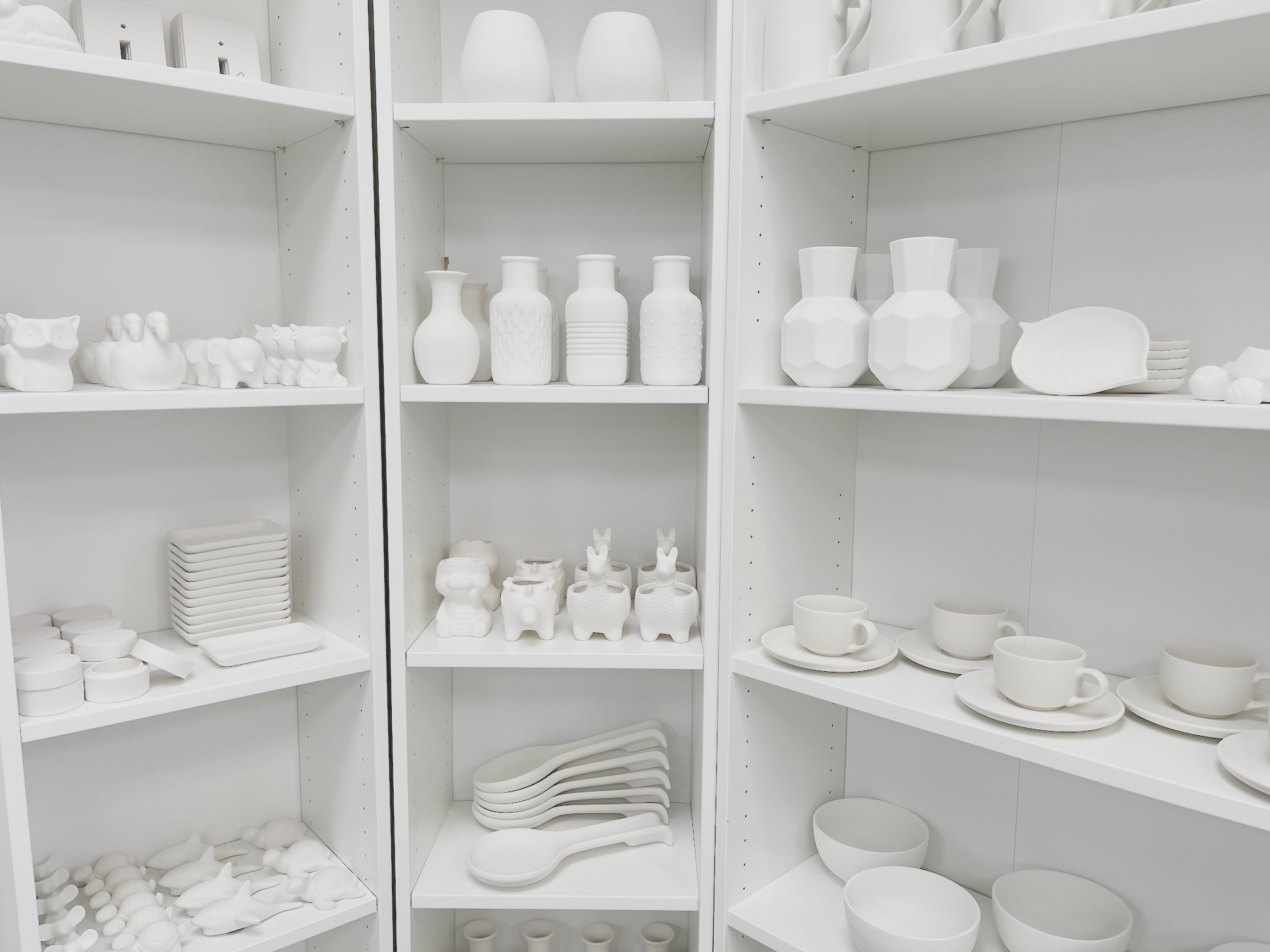 From dish-ware, to plant pots, vases, figurines, and more! Choose something that speaks to you and then personalize it to match your space! Want something ultra unique? We have handmade pieces by local artists that you’ll only find here! Take it even further by joining one of our ceramics classes and create your own object from scratch!